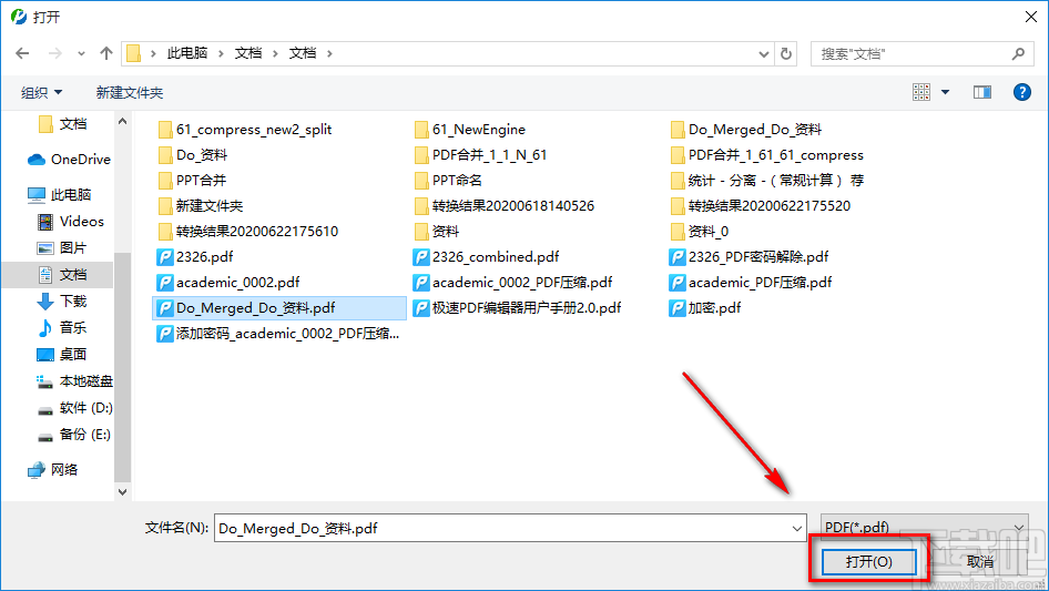 3.在文件添加页面中,我们找到需要压缩的PDF文件后,再点击页面右下角的“打开”按钮即可将文件添加到软件中。