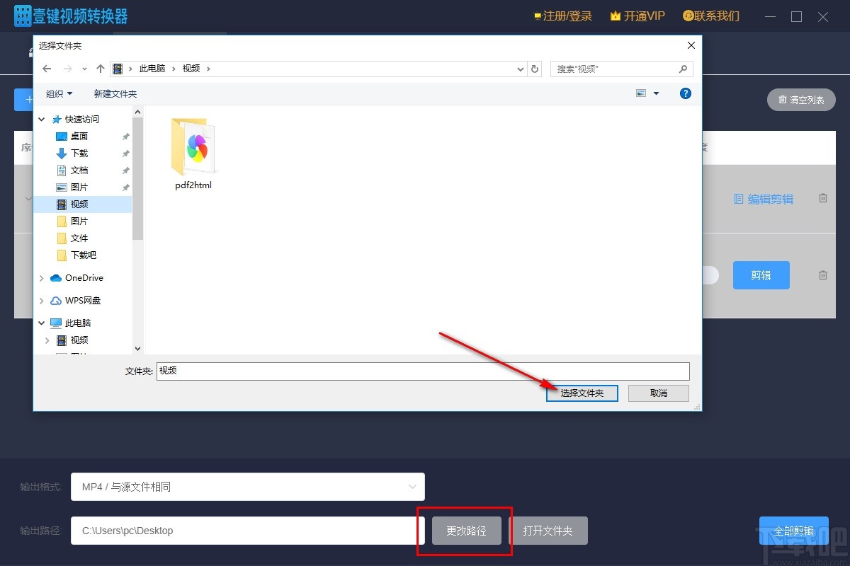 7.点击这个确定按钮之后回到软件主界面,点击界面中的更改路径按钮可以在出现的界面中选择文件输出储存路径。