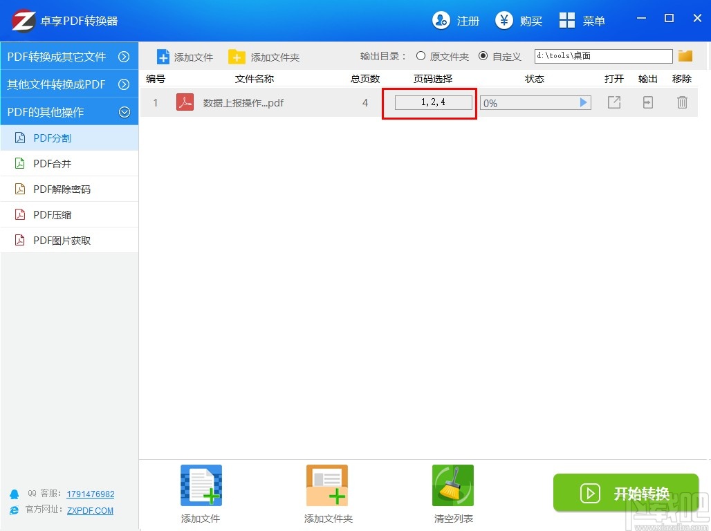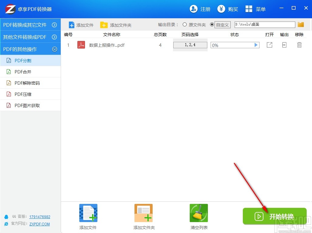 6.最后一步在设置好输出储存路径之后,我们点击界面右下角的开始转换按钮就可以开始分割PDF文件的操作了。