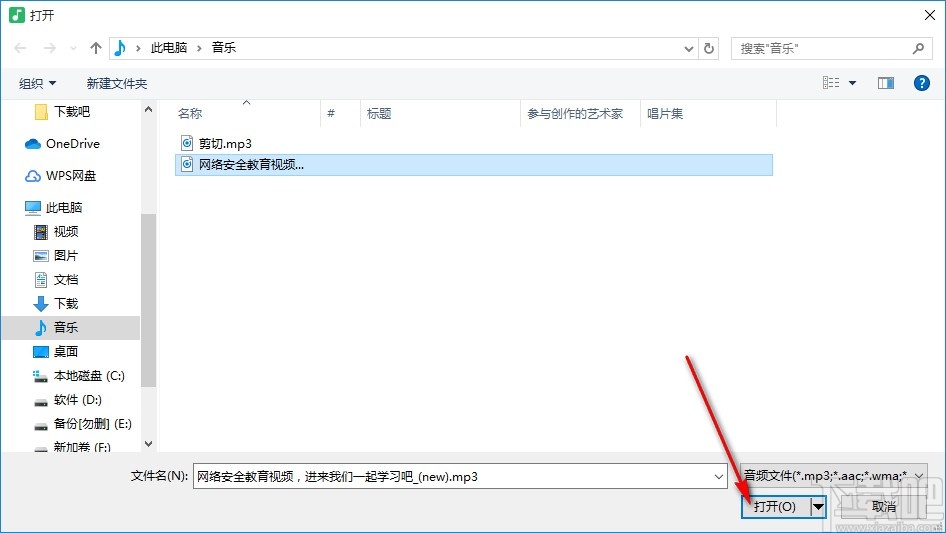 2.点击界面中的添加文件按钮之后会打开一个选择文件的界面,我们在这个界面中选中想要剪切的音频之后点击打开按钮。