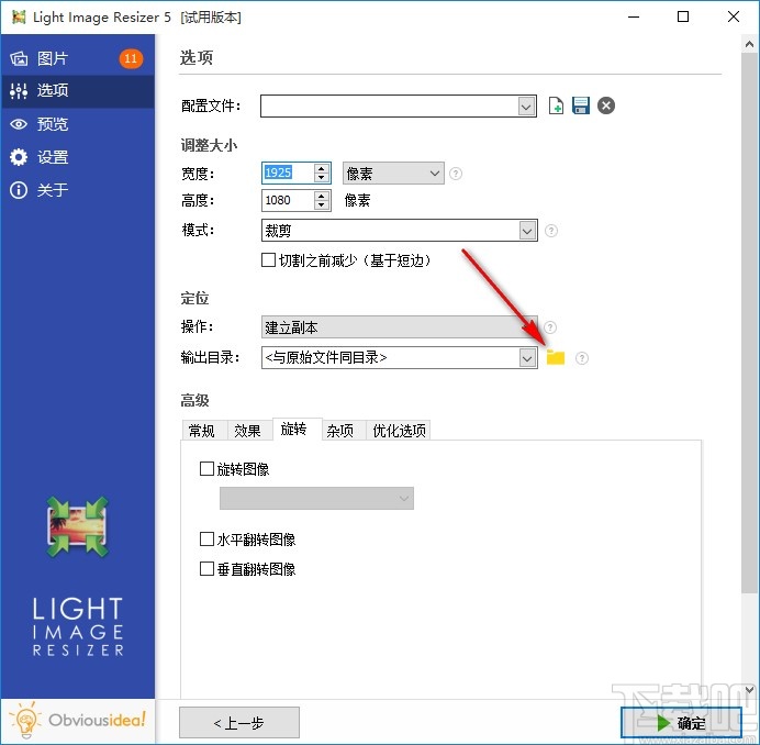 6.输入裁剪的尺寸大小之后,我们点击下方输出目录选项右边的文件夹图标,点击这个图标打开选择输出目录的界面。