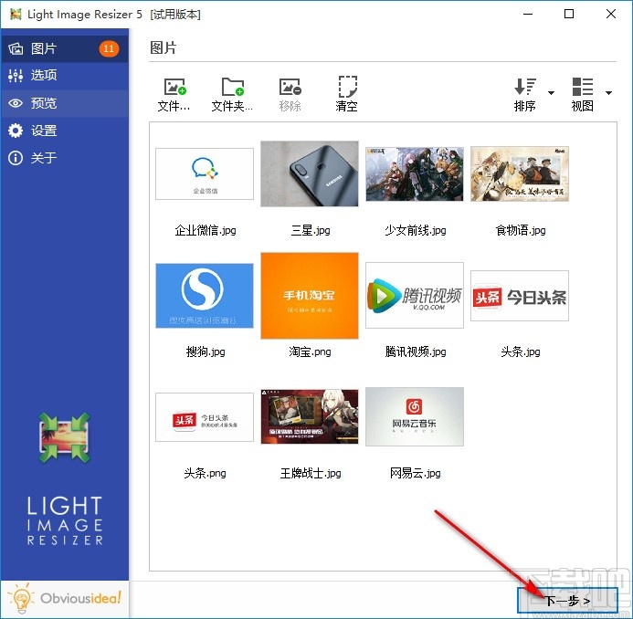 3.点击这个打开按钮之后,下一步我们在出现的界面中点击界面右下角的下一步按钮就可以进入到图片的操作界面了。