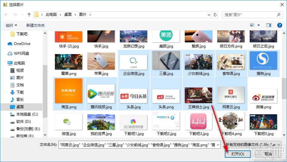 2.点击添加文件图标之后,下一步会打开一个选择文件的界面,我们找到想要裁剪的图片选中之后点击右下角的打开按钮。