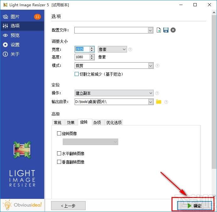 8.点击设置好输出目录之后,我们在这个图片的操作界面右下角点击确定按钮,点击这个确定按钮之后就可以开始裁剪图片的操作了。