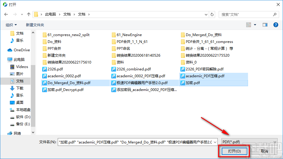 3.在文件添加页面中,我们找到需要合并的PDF文件并选中,然后再点击页面右下角的“打开”按钮即可将文件添加到软件中。