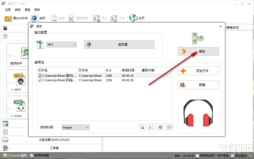 以上就是小编今天跟大家分享的使用格式工厂这款软件来混合音频文件的具体操作方法,有需要的朋友赶紧试一试这个方法吧,希望这篇方法教程能够对大家有所帮助。