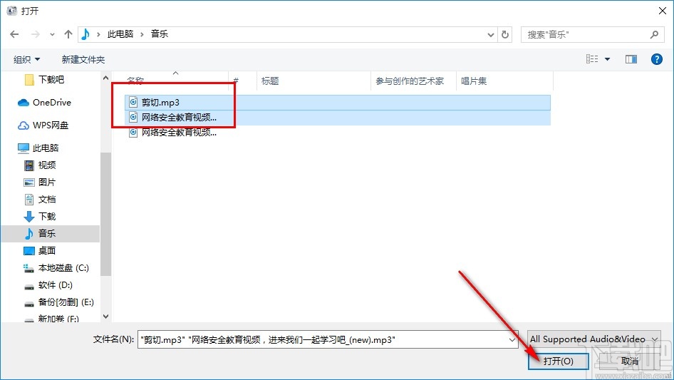 3.点击添加文件之后下一步就会打开选择文件的界面了,在这个界面中我们选中目标音频文件之后,点击右下角的打开按钮。