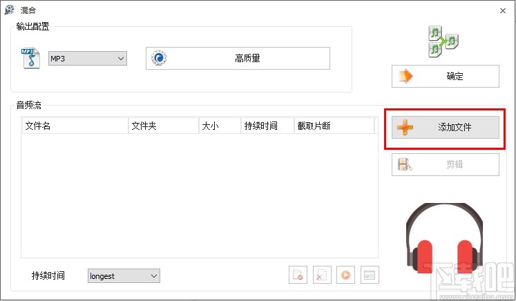 2.点击进入到混合功能界面之后,我们点击界面中的添加文件按钮,点击之后可以选择想要混合的音频文件。