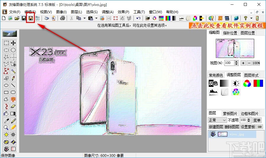 6.点击确定按钮之后我们就可以看到图像锐化之后的效果了,接着点击左上角的另存为图标,如下图中框出的位置所示。