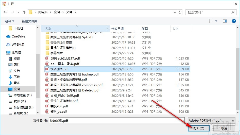 2.接着下一步就在出现的选择文件界面中,选中想要解密的PDF文件之后点击打开按钮将它添加到软件界面当中。