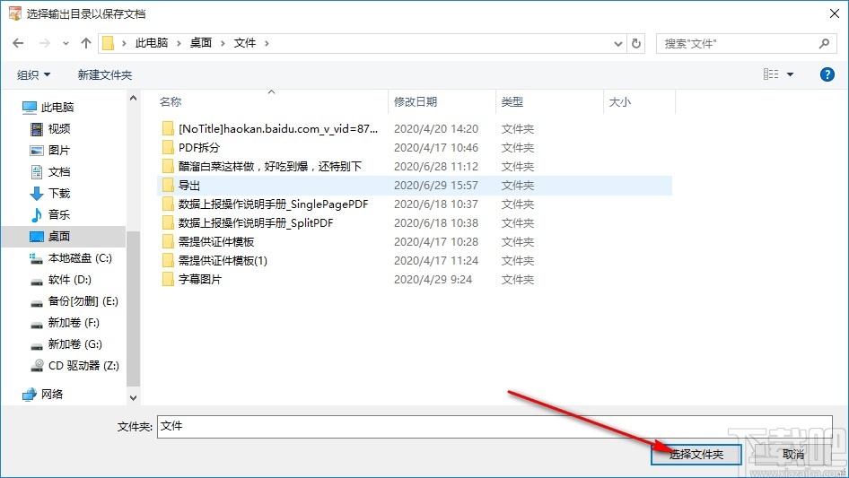 5.点击这个三点按钮之后就会打开选择输出文件夹的界面了,我们在这个界面中选择好输出文件夹之后点击右边的选择文件夹按钮并点击。