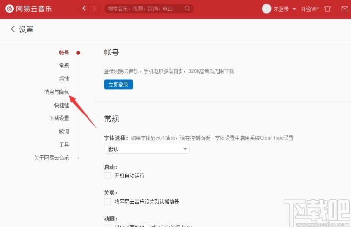 2.点击进入到软件的设置界面之后,我们找到界面左边的消息与隐私这个设置选项,找到之后点击切换到其中。