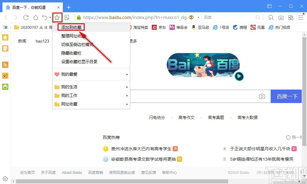 1.首先第一步打开想要收藏的网页之后,点击上方地址栏左边的星号,然后选择添加到收藏这个选项。