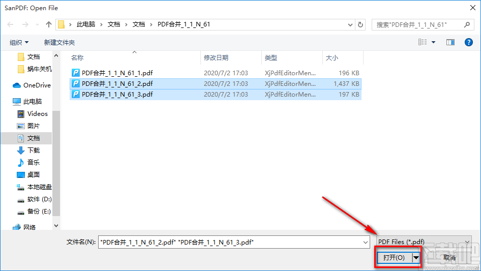3.在文件添加页面中,我们找到需要合并的PDF文件后,再点击页面右下角的“打开”按钮即可将文件添加到软件中。