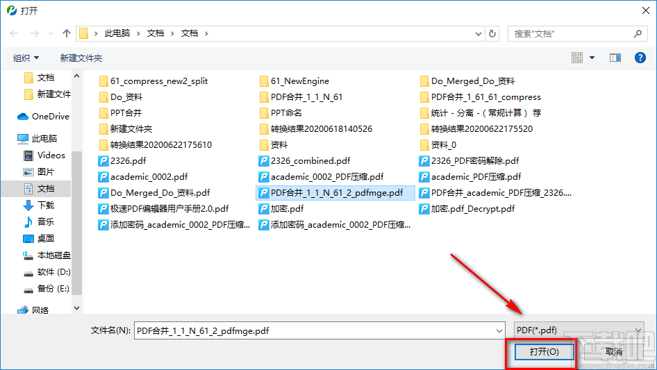 3.在文件添加页面中,我们找到需要分割的PDF文件后,再点击页面右下角的“打开”按钮即可将文件添加到软件中。