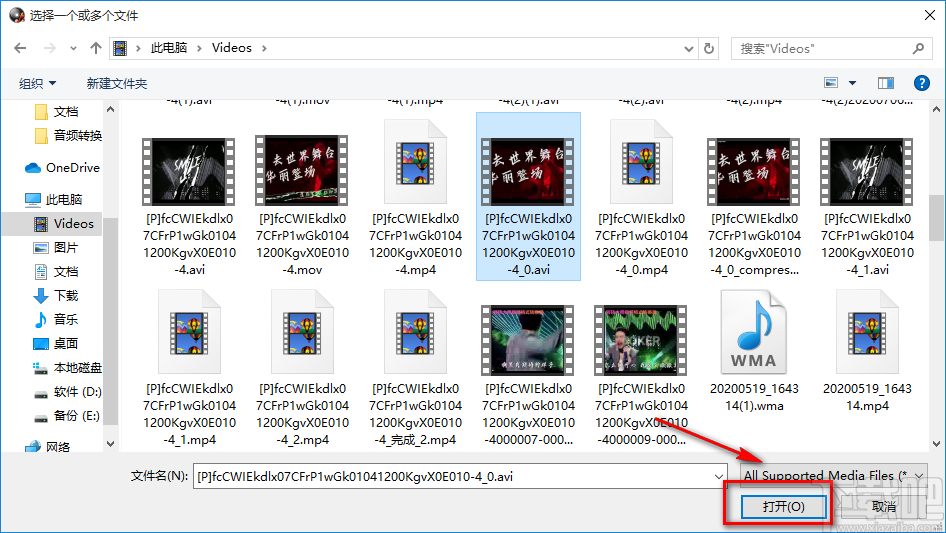 2.在文件添加页面中,我们找到需要提取音频的视频文件后,再点击页面右下角的“打开”按钮即可将文件添加到软件中。