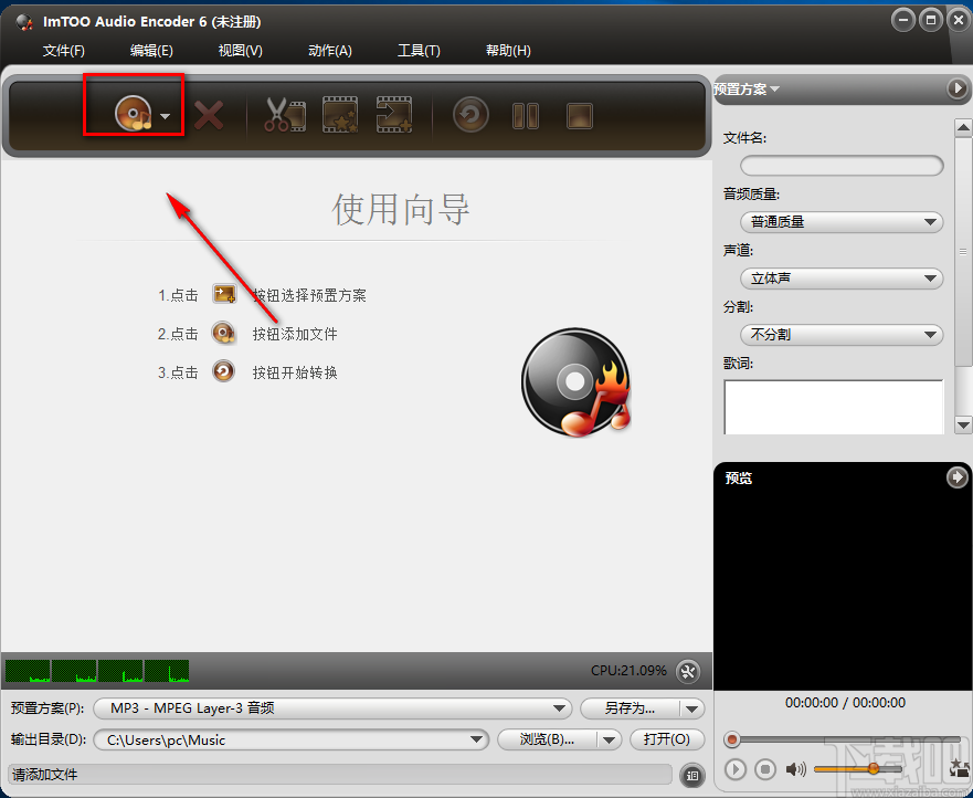 1.首先打开软件,在软件界面的左上角找到文件打开按钮,我们点击该按钮进入到文件添加页面。