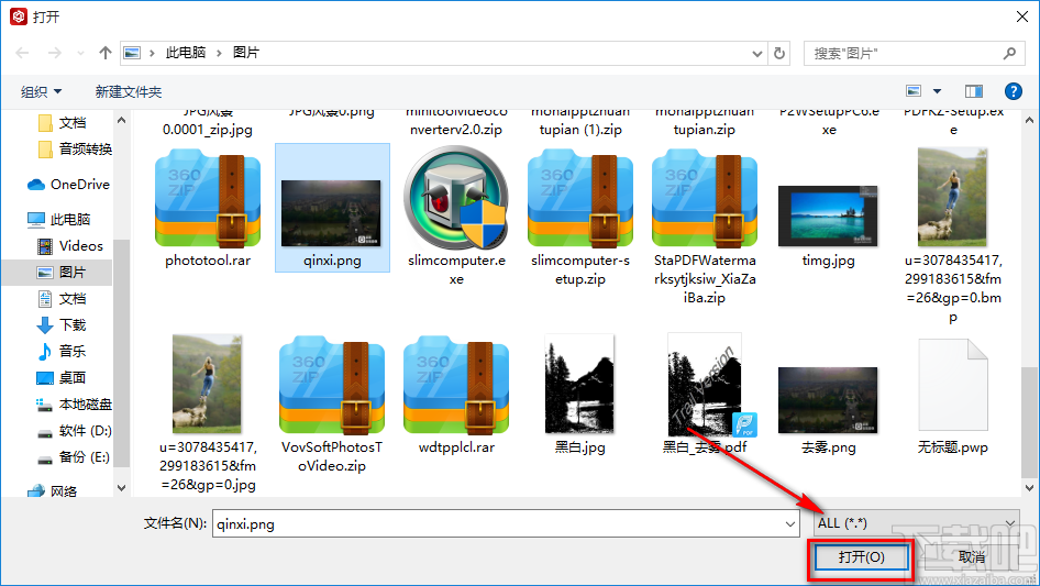 3.在文件添加页面中,我们找到需要更改尺寸的图片文件后,再点击页面右下角的“打开”按钮即可将文件添加到软件中。