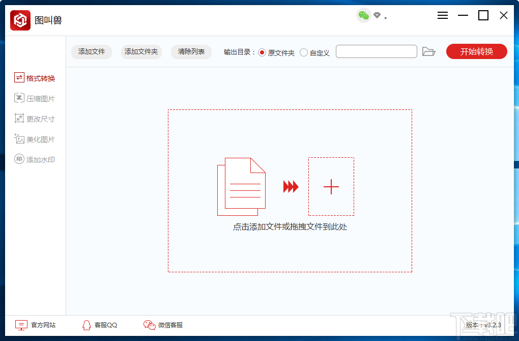4.将图片添加到软件后,我们在界面顶部找到“输出目录”选项,根据自己的需要在其后面对输出目录进行选择,小编在这里选择“原文件夹”;如果选择“自定义”,则还要点击其后面的文件打开按钮进入到文件保存路径选择页面对文件的输出目录进行选择。
