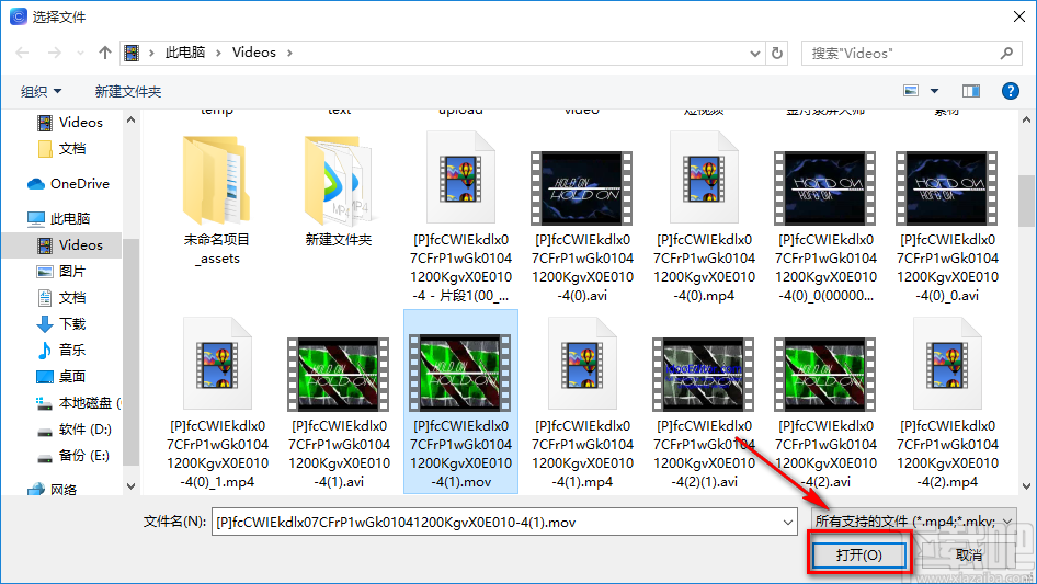 3.在视频添加页面中,我们找到需要压缩的视频文件后,再点击页面右下角的“打开”按钮即可将文件添加到软件中。