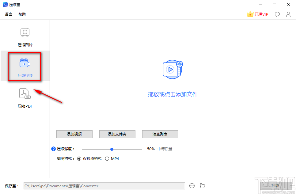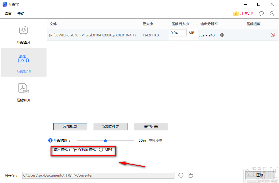 5.在界面左下方还可以找到“输出格式”选项,在这里只是压缩视频,不转换视频格式,所以我们选择“保持原格式”即可。