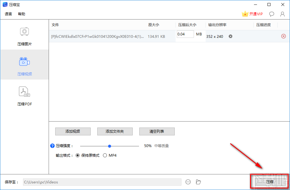 8.完成以上所有步骤后,我们在界面右下角找到“压缩”按钮,点击该按钮就可以开始压缩视频,并将其保存在指定的文件夹中。