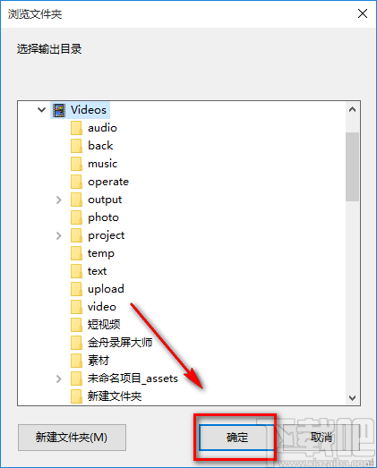 7.在文件保存路径选择页面中,我们选中文件的保存位置后,再点击页面右下角的“确定”按钮即可。