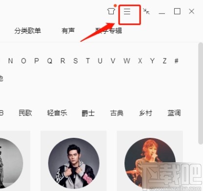 1.首先第一步我们打开QQ音乐电脑版之后,在界面的右上方找到三条横线的菜单图标,找到之后点击它。