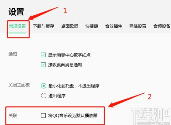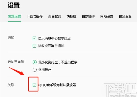 3.进入到软件的设置界面之后,我们在常规设置界面就可以看到有关联模块了,其中有“将QQ音乐设置为默认播放器”这个选项。