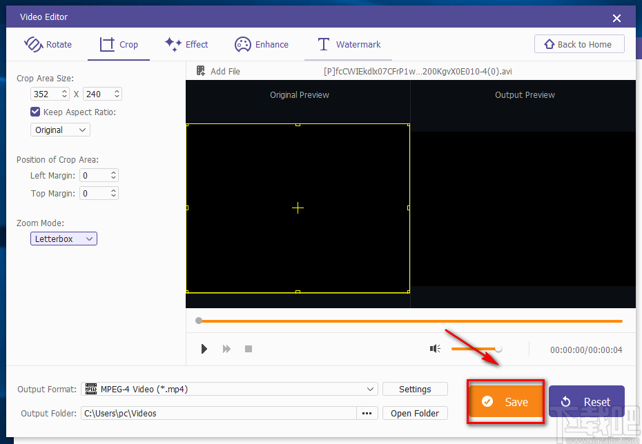 11.完成以上所有步骤后,我们在界面右下角找到黄色的“Save”按钮,点击该按钮就可以开始裁剪视频画面并将其保存在指定的文件夹中。
