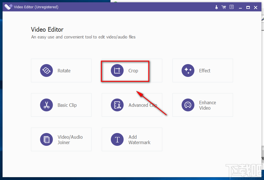 1.首先打开软件,在软件界面上找到“Crop”选项,我们点击该选项可以进入到裁剪页面。