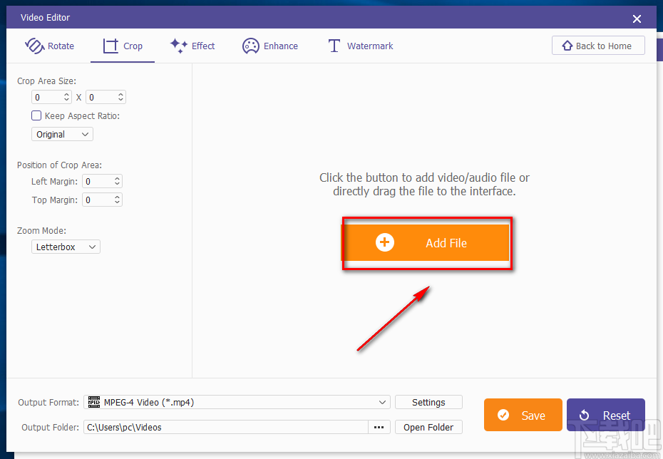 2.在裁剪页面的右侧,可以找到一个黄色的“Add File”按钮,点击该按钮进入到文件添加页面。