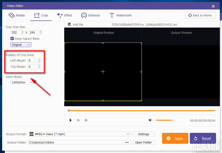 7.紧接着在界面左上方找到“Position of Area”选项,该选项表示裁剪区域位置的意思,我们根据自己的需要,分别点击其下方的“Left Margin”、“Top Margin”选项后面的上下按钮来设置裁剪区域的左边距和上边距。