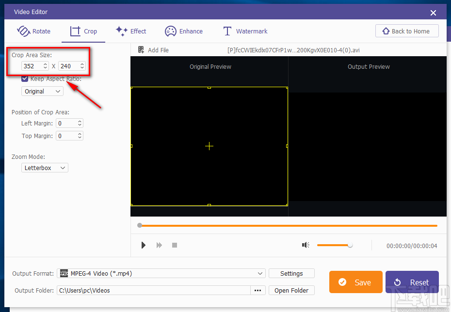 4.将文件添加到软件后,我们在页面左上角找到“Crop Area Size”选项,该选项表示裁剪区尺寸,根据自己的需要,在其下方的文本框中输入裁剪区域的尺寸。