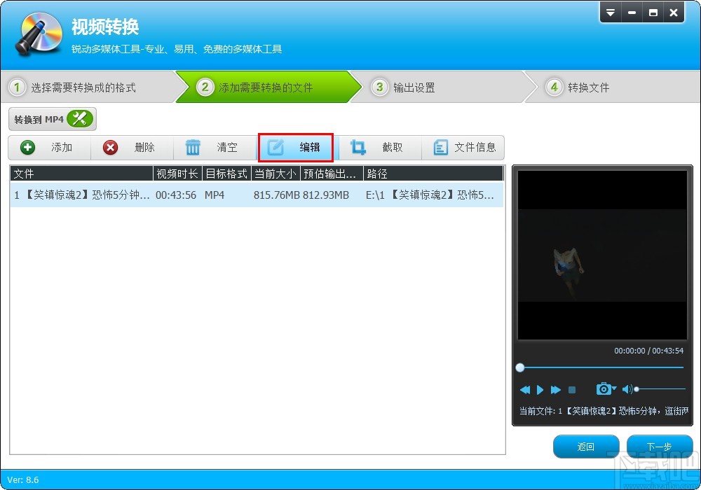 5.选择好格式之后点击确定按钮就会进入到转换文件界面了,然后我们点击上方的这个编辑功能按钮。