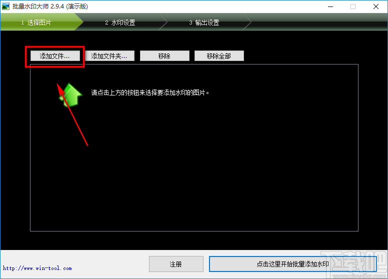 3.将图片添加到软件后,我们在界面顶部找到“水印设置”选项,点击该选项进入到水印设置页面。
