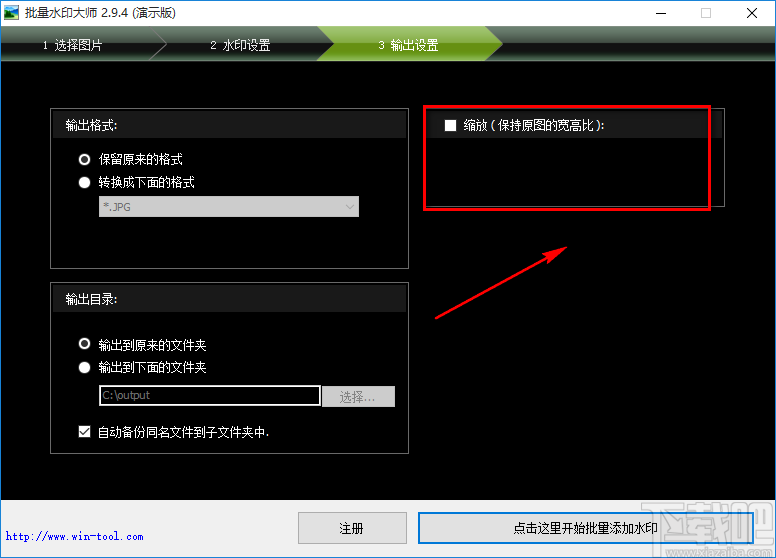 9.接下来在界面右上方找到“缩放(保持原图的宽高比)”选项,我们根据自己的实际情况决定是否勾选该选项即可。