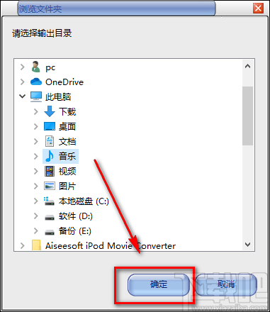 4.在文件保存路径选择页面中,我们选中文件的保存位置后,再点击页面右下角的“确定”按钮即可。
