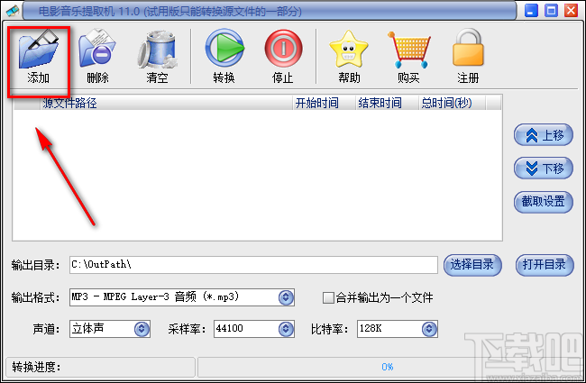 电影音乐提取机是一款非常实用的电影音乐提取软件,虽然该软件体积小巧,界面也很简单,但是可以帮助用户将视频中的音频提取出来,而且提取的速度非常快,操作方法也十分简单。喜欢观看电影的朋友都知道,一部好的电影,它所配备的插曲也是非常好听和经典的,但是有些电影中的插曲没有发布出来,为了方便单独使用和倾听这些歌曲,我们就需要利用这款软件将音频从视频中提取出来。那么接下来小编就给大家详细介绍一下电影音乐提取机从视频中提取音频文件的具体操作方法,方法简单易懂,有需要的朋友可以看一看。