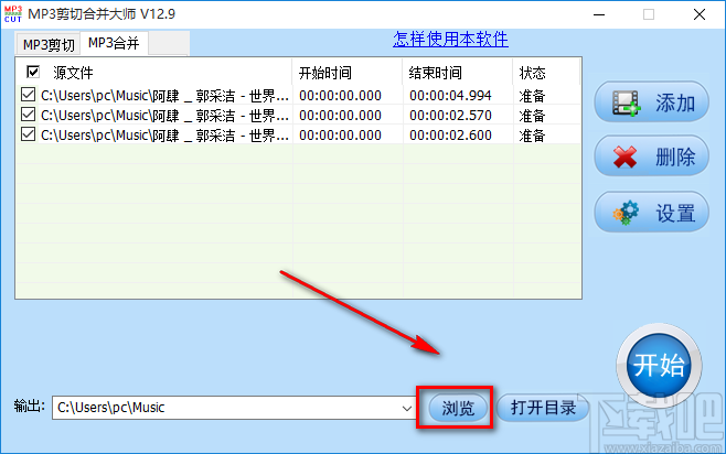 5.将音频文件添加到软件后,我们在页面右下方找到“浏览”按钮,点击该按钮进入到文件浏览页面。