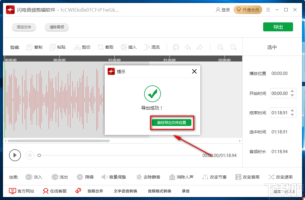 12.最后软件界面上会弹出一个导出成功提示框,我们可以点击框中的“前往导出文件位置”按钮将文件存放目录打开并对文件进行查看。