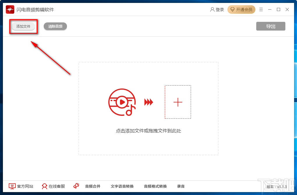 1.首先打开软件,在软件界面的左上角找到“添加文件”按钮,我们点击该按钮进入到文件添加页面。