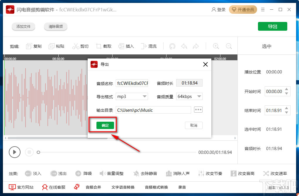 11.完成以上所有步骤后,我们在导出窗口左下角找到绿色的“确定”按钮,点击该按钮就可以将文件成功的导出软件。