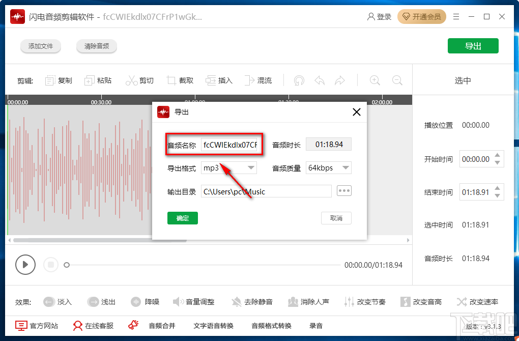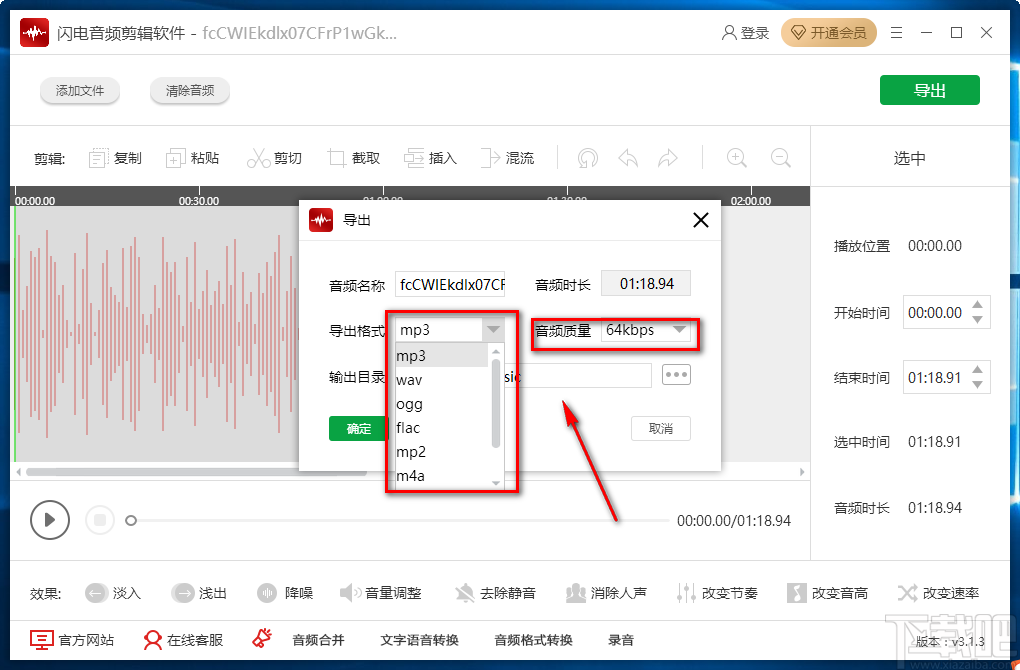 8.然后分别点击“导出格式”、“音频质量”下拉框,并根据自己的需要在下拉框中对这两个参数进行设置。
