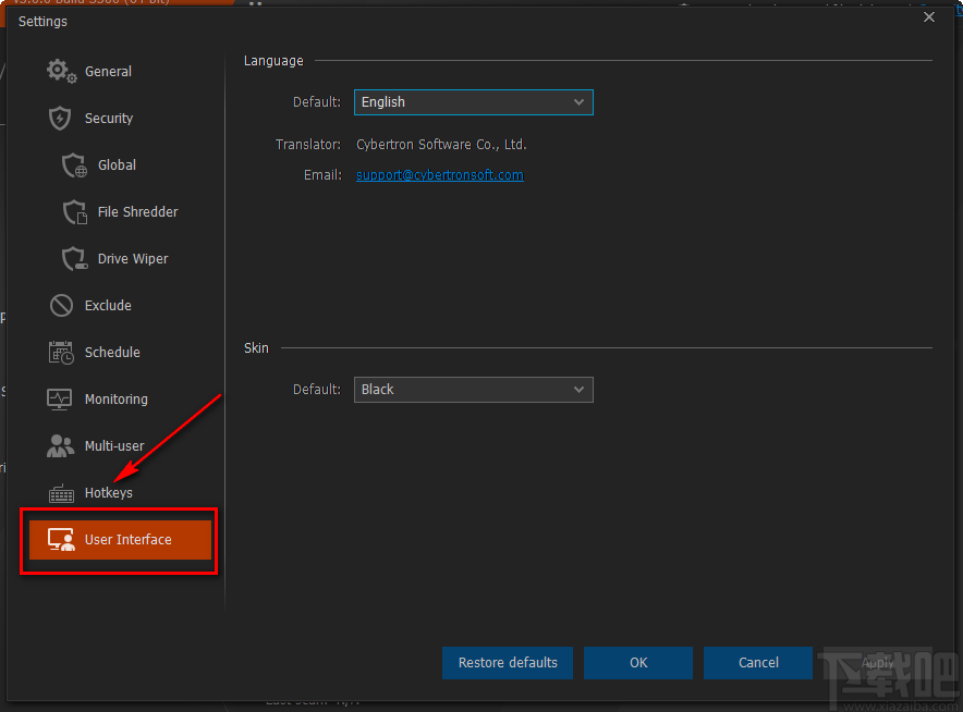 2.在设置页面中,我们页面左下角找到“User Interface”按钮,点击该按钮页面右侧就会出现相应的操作选项。