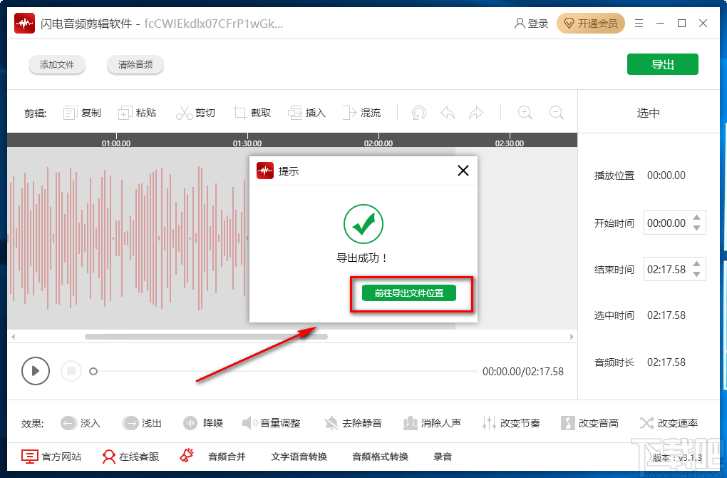 11.最后软件界面上会弹出一个导出成功提示框,我们可以点击框中的“前往导出文件位置”将文件存放目录打开并对文件进行查看。