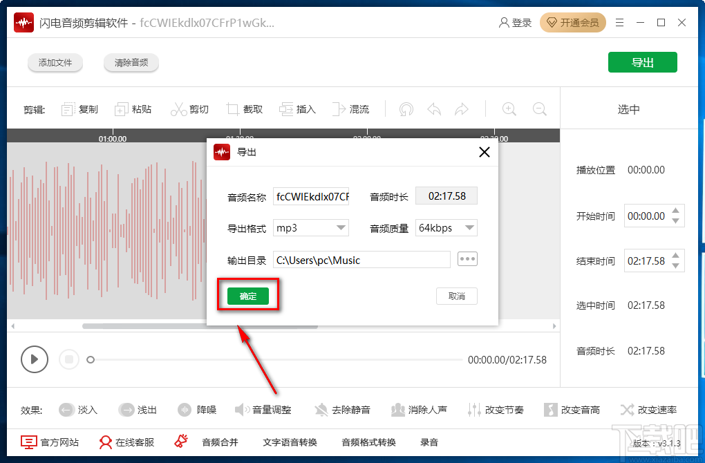 10.完成以上所有步骤后,我们在导出窗口左下角找到绿色的“确定”按钮,点击该按钮就可以将文件成功的导出软件。