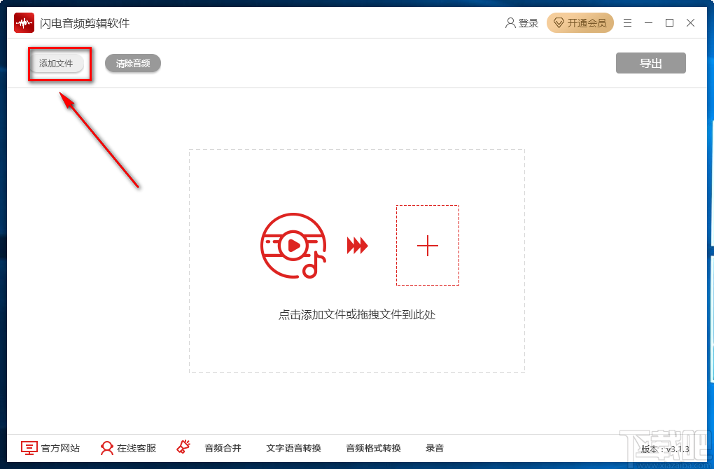 1.首先打开软件,在软件界面的左上角找到“添加文件”按钮,我们点击该按钮进入到文件添加页面。