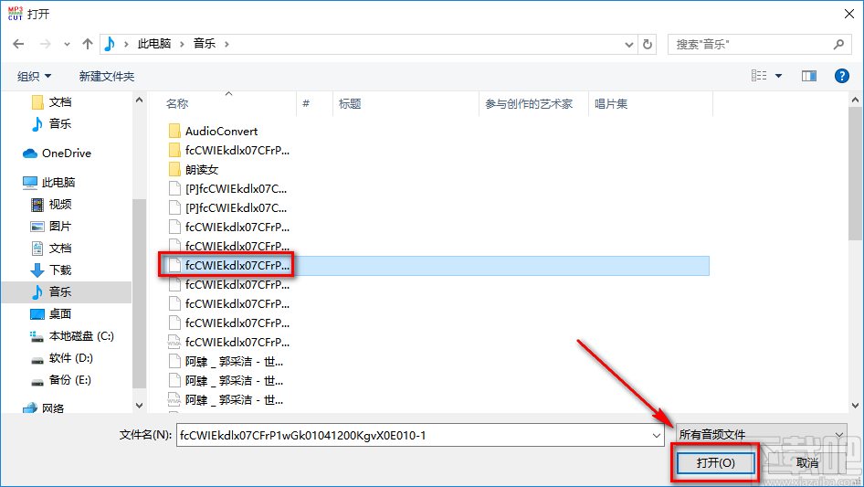 3.在文件添加页面中,我们找到需要剪切的音频文件后,再点击页面右下角的“打开”按钮即可将文件添加到软件中。