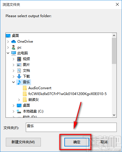 7.在文件保存路径选择页面中,我们选中文件的保存位置后,再点击页面右下角的“确定”按钮即可。